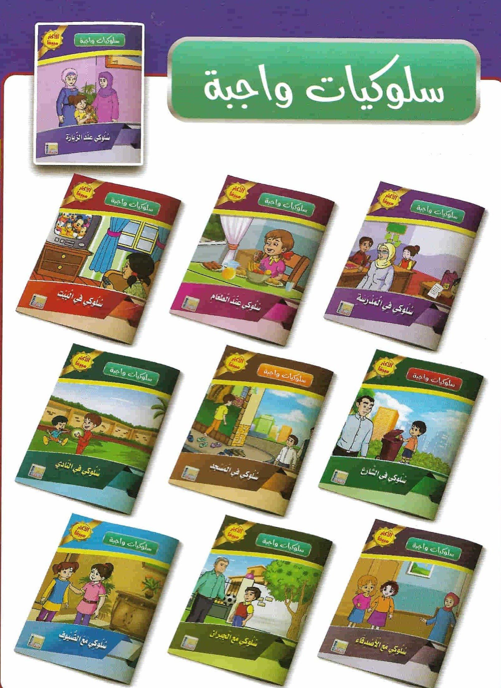 سلوكي في البيت ـ سلوكي في المدرسة ـ سلوكي في الشارع ـ سلوكي في المسجد ـ سلوكي مع الاصدقاء ـ سلوكي عند الطعام ـ سلوكي مع